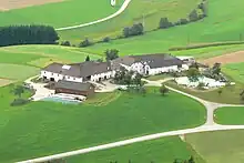 Autant que possible on tâche de se fixer au centre de l'exploitation et sur une pente douce afin d'obtenir à volonté l'écoulement des eaux pluviales sans ravins et à peu de frais et de conduire les eaux des fumiers où on voudra sur un terrain[3].