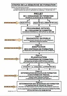 Ainsi, la structure de formation et le formateur lui-même vont élaborer un plan d’action afin de dispenser le programme officiel dans sa totalisé et cela, sur l’ensemble du cursus de formation. Pour un même cycle de formation, certains contenus de formation seront retenus comme prioritaires et d’autres comme secondaires.