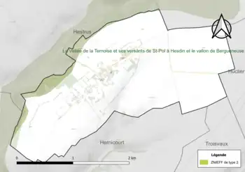 Le territoire communal comprend une ZNIEFF de type 2[Note 2] : la vallée de la Ternoise et ses versants de Saint-Pol-sur-Ternoise à Hesdin et le vallon de Bergueneuse. Cette ZNIEFF, située au nord d'une ligne allant de Saint-Pol-sur-Ternoise à Hesdin, d’une superficie de 9 502 ha et d'une altitude variant de 22 à 90 m, présente des fonds de vallées, des coteaux crayeux et des zones prairiales[11].