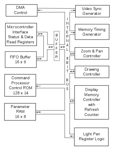 Sur les micro-ordinateurs 8 bits, il était chargé de la lecture de la mémoire et de l'envoi au connecteur vidéo. Dans ce type de processeur il y a une gestion plus ou moins complexe des couleurs, des fonctions de type gestion dynamique des sprites, évitant des assemblages en mémoire coûteux en traitement. Il gère également la gestion de la zone mémoire à afficher en fonction de la position du canon à électrons sur l'écran. Sur certains modèles il est également possible de changer la palette de couleur en fonction de la position verticale.