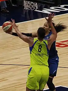 En Women's National Basketball Association (WNBA), la joueuse polonaise Małgorzata Dydek détient le plus grand nombre de contres en carrière avec 877 devant l'Américaine Lisa Leslie[9]. Avec Leslie, elle détient aussi le record de *contres (10) sur une rencontre jusqu'aux 11 réussites de Brittney Griner le [10], performance qu'elle égale en play-offs le 17 septembre 2015 battant son précédent record de post-saison qu'elle détenait depuis le 7 septembre 2014 avec 8 contres[11].