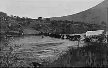 Après qu'ils se sont installés au-delà de l'Orange, dans un territoire qu'ils appellent « Transorange », les relations entre les Boers et les communautés établies entre le fleuve Orange et la rivière Caledon deviennent extrêmement tendues, notamment avec les Basotho. Harry Smith, à ce moment gouverneur de la colonie du Cap, décide d'annexer la zone et d'établir clairement la frontière, jusque-là « mouvante »[3], de la colonie. Le territoire compris entre le Vaal et l'Orange est officiellement annexé par les Britanniques, sous le nom de Souveraineté de la rivière Orange, le . Dans ce processus, les Basotho perdent une grande quantité de terres, malgré le traité de 1843 qui leur accordait la zone située entre l'Orange et le Celadon ; quant aux Boers, ils sont furieux. Dirigés par Andries Pretorius, ils chassent le major Henry Douglas Warden de Bloemfontein en . En , Harry Smith arrive sur place avec son armée et affronte les Boers à la bataille de Boomplaats. Les Britanniques sont victorieux et tracent une ligne de frontière, appelée « ligne Warden »[4], qui s'étend de la confluence entre la Cornetspruit (aujourd'hui rivière Makhaleng) et l'Orange jusqu'à Jammerbergdrift, au bord de la rivière Caledon, en passant par Vegkop (ou Vechtkop). Cela conduit à un conflit avec les Basotho, à l'occasion duquel les armées du roi Moshoeshoe Ier défont les Britanniques à la bataille de Viervoet en 1851 puis à celle de Berea en 1852[4],[5].