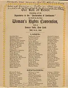 - Voir la liste de signataires sur le site du Women's Rights National Historical Park.