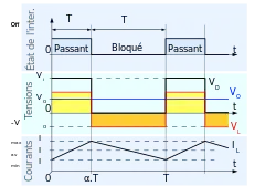 En conséquence, le courant IL traversant l'inductance est le même au début et à la fin de chaque cycle de commutation. Ce qui peut s'écrire de la façon suivante :
