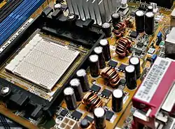 Les convertisseurs Buck sont couramment utilisés dans les ordinateurs afin de réduire la tension fournie par l'alimentation vers une tension plus faible (de l'ordre du Volt) nécessaire pour alimenter le CPU. Ces alimentations doivent fournir un fort courant (plus de 100 A) avec une faible ondulation de tension (moins de 10 mV) tout en restant dans un volume réduit.