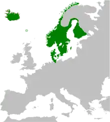 L’histoire des pays nordiques en tant que région historique et culturelle commence il y a plus de mille ans avec la formation des royaumes vikings[1],[2]. Le royaume de Norvège unifie en son sein les îles Féroé, l’Islande et le Groenland ainsi que les îles (aujourd’hui écossaises) Shetland et Orcades et maintient des liens très forts avec les royaumes du Danemark et de Suède, cette dernière possédant la future Finlande et l’archipel d’Åland[1],[2].