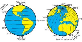 - À la différence de la latitude (position nord ou sud) qui bénéficie de l'équateur et des pôles comme références, aucune référence naturelle n'existe pour la longitude.
