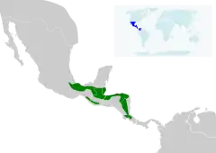 Cet oiseau est présent au Belize, au Costa Rica, au Guatemala, au Honduras, au Mexique et au Nicaragua.