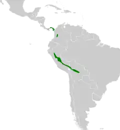 Cette espèce est présente en Bolivie, en Colombie, au Costa Rica, en Équateur, au Venezuela et au Pérou.