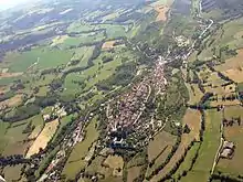 L'occupation des sols de la commune, telle qu'elle ressort de la base de données européenne d’occupation biophysique des sols Corine Land Cover (CLC), est marquée par l'importance des territoires agricoles (65,1 % en 2018), une proportion sensiblement équivalente à celle de 1990 (63,6 %). La répartition détaillée en 2018 est la suivante : prairies (31 %), milieux à végétation arbustive et/ou herbacée (28 %), terres arables (21,3 %), zones agricoles hétérogènes (12,8 %), zones urbanisées (5,8 %), forêts (1,2 %)[18]. L'évolution de l’occupation des sols de la commune et de ses infrastructures peut être observée sur les différentes représentations cartographiques du territoire : la carte de Cassini (XVIIIe siècle), la carte d'état-major (1820-1866) et les cartes ou photos aériennes de l'IGN pour la période actuelle (1950 à aujourd'hui)[Carte 2].