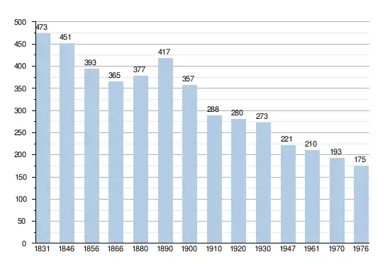 - Sources : INS, Rem. : 1831 jusqu'en 1970 = recensements, 1976 = nombre d'habitants au 31 décembre.