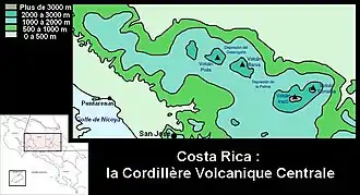 | Localisation de la cordillère Centrale au Costa Rica. | ||