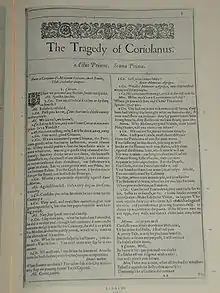 - L'auteur disposait de procédés dramatiques pour lever ces ambigüités : le soliloque ou l’aparté dans lesquels le héros révèle le fond de sa pensée. Or il manque justement une voix dans ce concert, celle de Coriolan, auquel Shakespeare ne donne pas la parole dans un de ces longs monologues introspectifs (on pense à celui de Richard de Gloucester sur lequel s'ouvre Richard III ou le To be or not to be d'Hamlet) qui révèlent au spectateur le cœur du héros[4]. Il est vrai que cette absence même est signifiante, puisqu'elle est une façon de peindre un personnage d'une franchise brutale, dont la nature est de dire ce qu'il pense, quel qu'en soit le risque.