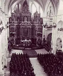 Le quatrième centenaire de la naissance d'Henri IV est célébré en 1953[62]. Une délégation paloise, menée par Louis Sallenave, le maire de la ville, est accueillie au Prytanée au cours d'une cérémonie de recueillement devant l'urne qui contient les cendres du cœur du roi dans la chapelle Saint-Louis[63]. L'urne est ensuite envoyée à Pau le 27 juin, sous la conduite d'un détachement d'élèves du Prytanée, puis rapportée à La Flèche le 27 septembre[63].