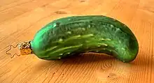 - (en)/(de) Cet article est partiellement ou en totalité issu des articles intitulés en anglais « Christmas pickle » (voir la liste des auteurs) et en allemand « Weihnachtsgurke » (voir la liste des auteurs).