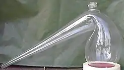 Il est généralement en verre, parfois en terre ou en métal. Il comprend un vase sphérique contenant la substance à chauffer et un long col étroit, courbé vers le bas. Celui-ci joue le rôle de condenseur ; un récipient placé sous son extrémité recueille les vapeurs condensées.