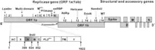 Tous les CoV ont un génome d'ARN non-segmentés (simple brin) organisé de la même manière : les deux tiers environ du génome contiennent deux grands « cadres de lecture ouverts » et se chevauchant (dits ORF1a et ORF1b). Ces deux cadres sont traduits en « polyprotéines réplicase » pp1a et pp1ab. « Ces polyprotéines sont ensuite traitées pour générer 16 protéines non structurales, désignées nsp1 ~ 16. La partie restante du génome contient des ORF pour les protéines structurales, y compris la pointe (S), l'enveloppe (E), la membrane (M) et la nucléoprotéine (N). Un certain nombre de protéines accessoires spécifiques à la lignée sont également codées par différentes lignées de CoV »[3],[27],[28],[29].