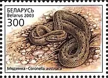 Un timbre de Biélorussie émis en 2003 représente Coronella austriaca.