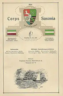 Le corps est fondé le 25 juin 1838[1] à Kiel. Il porte les couleurs vert, blanc et rouge bordeaux. La devise est "Virtuti semper corona ! (à peu près "[la] virilité [mérite] toujours la couronne"). Comme pour Holsatia (de), le deuxième ancien corps de Kiel, la période précédant la Première Guerre mondiale est marquée par de longues phases de suspension pour Saxonia. La première suspension dure du semestre d'été 1841 au 9 décembre 1842. Un grand tournant a lieu en mars 1848, lorsque Saxonia participe au soulèvement du Schleswig-Holstein et que la vie du corps s'éteint complètement[2]. Saxonia se réunit à nouveau en tant que corps le 24 février 1858 (comme Holsatia trois ans plus tôt), mais seulement pour un peu plus d'un an. Le 21 mai 1859, elle est à nouveau suspendue et reconstituée le 11 décembre 1864. La troisième phase de suspension a lieu le 19 juillet 1870 à la suite de la guerre franco-prussienne. Cette fois-ci, la reprise des activités n'a lieu que vingt ans plus tard, au semestre d'hiver 1890/91. À l'exception du semestre d'été 1894 et du semestre d'hiver suivant 1894/95, elle existe ensuite sans interruption jusqu'à la Première Guerre mondiale. L'essor de la Saxonia, tout comme celui de la Holsatia, renouvelée en 1905 après une longue interruption, est également lié à l'augmentation du nombre d'étudiants à l'université de Kiel après 1895.