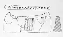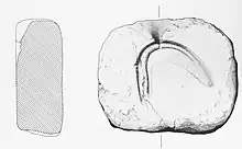 Parmi cet abondant mobilier céramique, le site a également révélé la présence au sein du village de nombreux croissants d’argile mal cuits, objets typiques du Bronze final dont la fonction supposée a fait l’objet de nombreuses études. Dans le cadre des fouilles de Cortaillod-Est, on a retenu une interprétation symbolique de ces objets, qui pourraient représenter des têtes de taureau[46]. Quoi qu’il en soit, la répartition de ces croissants d’argile au sein du village « [...] se superpose exactement à la zone couverte pas les habitations, indiquant que ces artefacts font ici partie du mobilier en relation avec les maisons. »[47].
