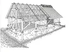 - De 992 à 991 av. J.-C. enfin, de nouveaux abattages sont effectués pour agrandir la palissade qui connaîtra dès lors sa forme définitive. Cet approvisionnement en bois d’œuvre est poursuivi régulièrement au moins entre 987 et 977 av. J.-C., vraisemblablement pour effectuer les diverses réparations que l’on observe sur les maisons les plus anciennes. On constate en effet que sur certaines structures « [...] des renforts étaient ajoutés régulièrement pendant toute la période d’habitation - et ce jusqu’à l’abandon présumé. »[23].