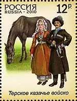 La communauté militaire des cosaques russes du Terek a été formée en 1577 par des cosaques libres russes venus de la Volga vers le fleuve Terek, dans des territoires des principautés koumykes, sous protectorat russe[1].