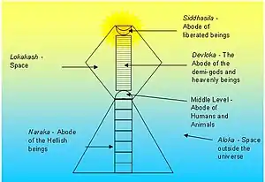 Les premiers jaïns contemplaient la nature de la terre et de l'univers. Ils sont pensés comme développeurs d'une hypothèse détaillée sur les divers aspects de l'astronomie et de la cosmologie. Selon les textes jaïns, l'univers est divisé en 3 parties[3] :