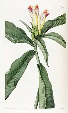 « Costus pictus; foliis lanceolatis pilosis, spica ovata terminali, bracteis apiculatis, labello trilobo; lacinia intermedia brevissima inciso-dentata revoluta. D. Don MSS.