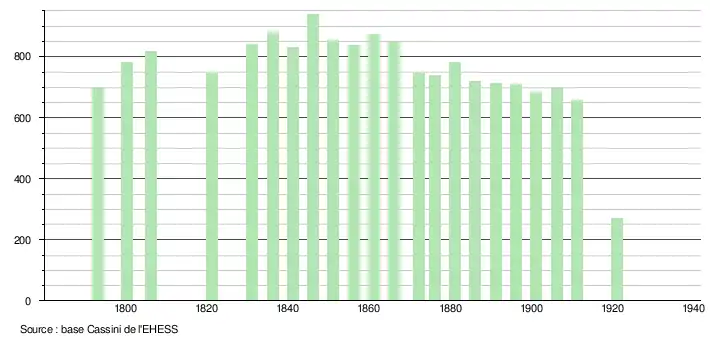 L'évolution démographique de Coucy-le-Château avant la fusion avec Auffrique-et-Nogent était :