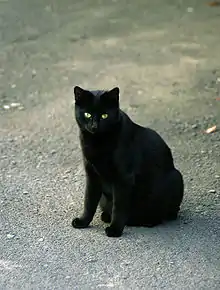 La robe de couleur noire s'exprime de façon différente selon les patrons. Un chat uni sera entièrement de couleur noire, avec des coussinets et le nez noir. Un chat tabby noir peut présenter des marques noires sur fond marron (appelé brown tabby) ou des marques noires sur fond gris argenté (appelé black silver tabby) ; le nez est alors de couleur brique. Par l'action du motif colorpoint, la couleur peut être rejetée sur le visage, la queue et les pattes : cette couleur est appelée seal point.