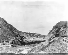 Les États-Unis rachetèrent les travaux aux Français et en prirent le contrôle le . Sous la direction de George Washington Goethals, les Américains reprirent une coupe plus large mais moins profonde dans le but de réaliser un canal à écluses, d'une largeur de 91 mètres à la base et de 540 mètres au sommet entre les montagnes. De nombreux équipements techniques et machines furent importés, ainsi qu'un système de chemin de fer de mine afin d'évacuer les matériaux extraits.