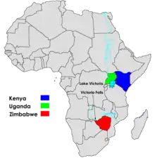 Les trois nations historiques sont le Kenya, l'Ouganda et le Zimbabwe. Le nom de Victoria fait référence au lac Victoria et aux chutes Victoria bordant ces trois pays, les deux étant baptisés en hommage à la reine Victoria.