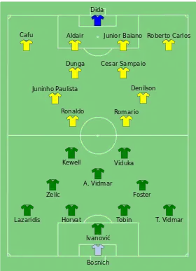 | Bosnich - Lazaridis, Ivanovic, Tobin, Zelic - Foster, Vidmar, Muscat | Équipes | Flores - Diego Lopez, Montero, Méndez | |||