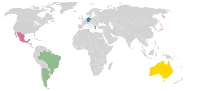 La carte suivante représente les nations qualifiées dans les différentes confédérations continentales :