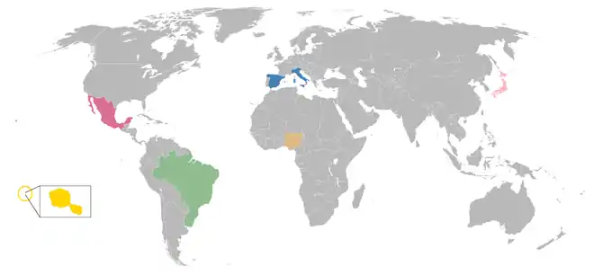 | CONMEBOL | Pays hôte et organisateur de la Coupe du monde 2014 | 30 octobre 2007 | 7e | 3 (1997, 2005 et 2009) | |