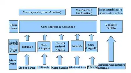 - du Tribunale ordinario (affaires civiles ou pénales, sauf si le Tribunal a jugé en appel sur un jugement du Juge de Paix) ;