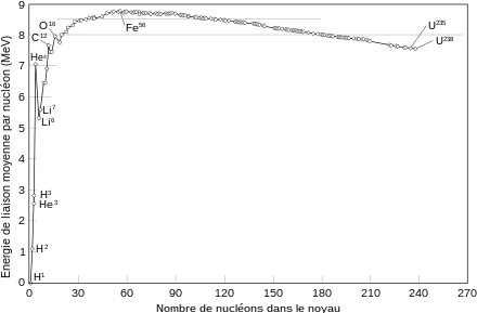 - [Fewell 1995] (en) Matthew P. Fewell, « The atomic nuclide with the highest mean binding energy » [« Le nucléide atomique dont l'énergie de liaison moyenne est la plus élevée »], American Journal of Physics, vol. 63, no 7, , p. 653-658 (OCLC 88056985, DOI 10.1119/1.17828, Bibcode 1995AmJPh..63..653F, résumé, lire en ligne [PDF]).