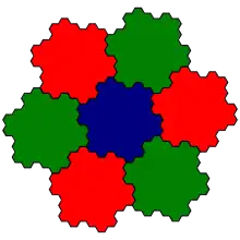 La frontière de l'île de Gosper — baptisée par Benoît Mandelbrot (1977)[1] — peut également être obtenue, à partir d'un hexagone, de manière itérative comme suit.