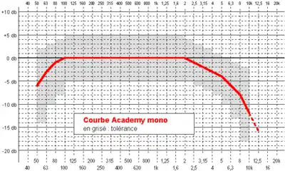 La courbe Academy était utilisée pour les films avec une piste sonore optique mono. C'est le résultat d'un consensus entre divers travaux européens et américains. La première tentative de codifier le système a été faite par la “Research Council of the Academy of Motion Picture Arts and Sciences” elle est publiée en 1937. En fait, il existe plusieurs courbes qui tiennent compte de différents haut-parleurs utilisés.