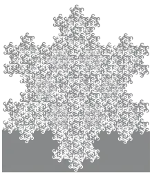 - Dans son ouvrage Fractal geometry of Nature, Benoît Mandelbrot décrit une fractale semblable à la snowflake sweep : l'arbre des singes, de dimension 1,8. Elle est basée sur 6 homothéties de rapport et 5 homothéties de rapport [5].