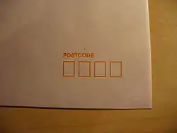 La plupart des enveloppes australiennes ont des cases orange préimprimées pour indiquer le code postal à quatre chiffres.