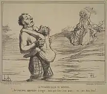 La première leçon de natation, par Honoré Daumier (vers 1855).
