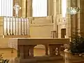En 1930, pour le centenaire de la congrégation, commande est passée auprès de René Lalique d'un grand crucifix de verre. Lalique propose outre le crucifix, d'élaborer un retable, un tabernacle, des verrières, une table de communion, une lampe et des colonnes[3]. La plupart des éléments ont été réalisés à partir de verre moulé et dépoli. L'ensemble réalisé par le maître-verrier « dans un ensemble architectural est l’œuvre de René Lalique la plus importante au monde »[3]. La somme demandée à la communauté religieuse par le maître-verrier est minime[2].