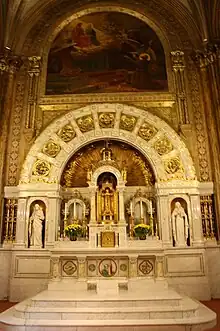 La chapelle est de style éclectique avec des voûtes néoromanes et un décor néorenaissance. On remarque au-dessus du maître-autel un tableau de Thaddeus von Zukotynski (en) (1855-1912), élève de Jan Matejko, qui montre saint François d'Assise priant à la Portioncule et recevant les visions de Jésus, Marie et les anges.