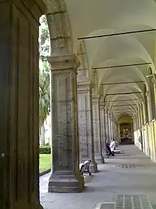 Le cloître lumineux et fort spacieux entoure un grand jardin de palmiers. Il possède des piliers de piperno surmontés d'arcades de la même pierre volcanique. Les cellules des religieuses donnaient sur le cloître. La façade extérieure est décorée de fausses colonnes avec des décorations du Flamand Pieter Mennes.