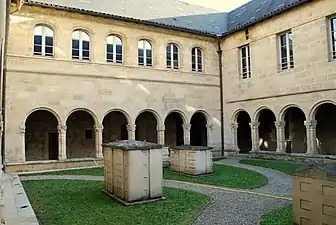 Au centre du préau du cloître on voit un socle hexagonal, retrouvé lors des fouilles en 1991, qui correspond au support d'une croix, aujourd'hui disparue, placée au centre du cloître en 1522.
