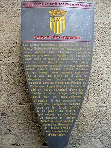 Le monastère augustin d'Aix fut fondé au XIIIe siècle. Il occupait ici un bâtiment beaucoup plus vaste que ce que l'on peut encore percevoir, allant jusqu’à l’actuel cours Mirabeau et formant en réalité un nouveau quartier de la ville[4].