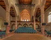 Les bâtiments conventuels survivants se déploient autour du cloître. Celui-ci est de plan carré, avec de chaque côté douze arcatures ouvrant sur l’espace central. Les arcades en arc brisé disposaient à l’origine d’un remplage gothique, qui a été supprimé à l’époque baroque. L’aile nord comprend la cuisine, le réfectoire des novices, le réfectoire d’hiver et, dans l’angle nord-est, le réfectoire d’été. Les cellules des moines se trouvent au premier étage[13].