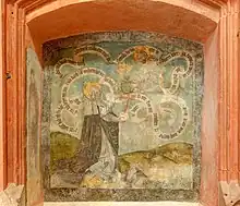 Alors que la décoration semble avoir été assez dépouillée à l’origine, le relâchement de la discipline l’ont amené à recevoir un important décor peint à partir de la deuxième moitié du XVe siècle. Un moine est en effet représenté avec les armoiries de la famille Stoer, probable référence à Pierre Stoer, prieur entre 1461 et 1466. Par ailleurs, un saint Wolfgang peint sur le mur nord peint porte la date de 1498, tandis que la représentation du martyr de saint Érasme dans la niche proche du portail sud comporte la date 1493. En outre, le style de la vision de Catherine de Sienne représentée dans une niche du bas-côté nord indique une réalisation vers 1470-1480[11].