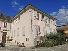 La municipalité qui suivit, administrée par le cimentier et maire républicain Jean-Pierre Guingat, fera construire des bâtiments neufs dans la prolongation de l'ancienne filature entre 1890 et 1891, qui composera un ensemble de style de la IIIe République (style Beaux-Arts)[6]. La mairie sera placée au centre du nouvel édifice et l'école dans l'aile ouest ; de nombreux enseignants viendront y travailler, dont Marie Sac, institutrice localement reconnue[6].
